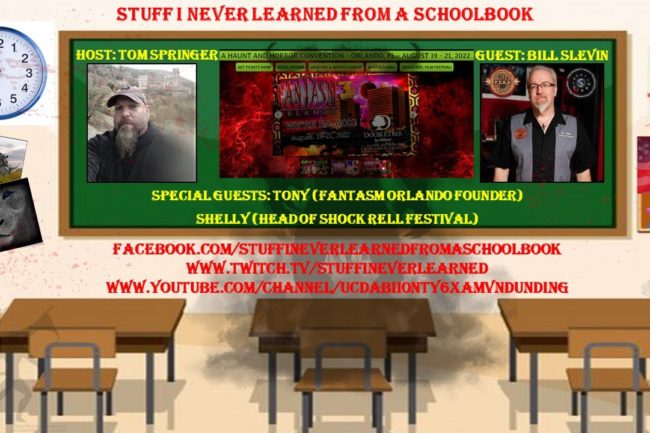 Tune in live on Wednesday June 15th at 8pm EST for a special edition of Stuff I Never Learned From A schoolbook Live Podcast, hosting by Tom Springer! We will be talking all about the amazing upcoming Horror, Haunt, & Paranormal Convention in Orlando this coming August 19th – 21st 2022 at the Dounble Tree…